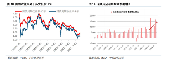 2)市场长逻辑未改:本轮牛市的核心逻辑是资本市场改革+结构性景气支撑+宏观流动性长期宽松,长逻辑并没有变化。①近期证监会召开多场座谈会,资本市场政策持续发力(表3);②从十月至今的行业表现来看,市场动能主要由部分景气板块轮动驱动(图9);③自24年底中央政治局会议调整货币政策基调至“适度宽松”以来,国内宏观流动性保持宽松状态(图10),以险资和两融资金为代表的增量资金持续流入A股(图11)。